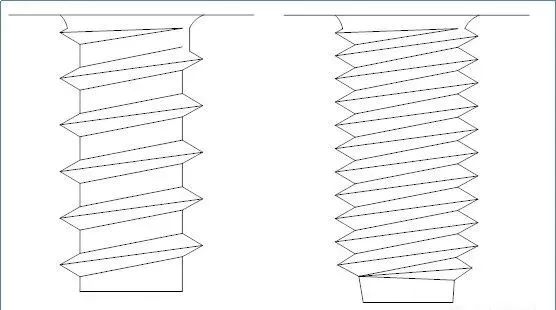 机牙螺纹:装配时先在装配物上钻孔攻牙,所攻内牙与螺丝的外牙规格一致,使用较小力矩装配。