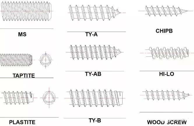 自钻螺纹:直接在装配物上使用,螺丝钻孔攻牙一次成型。